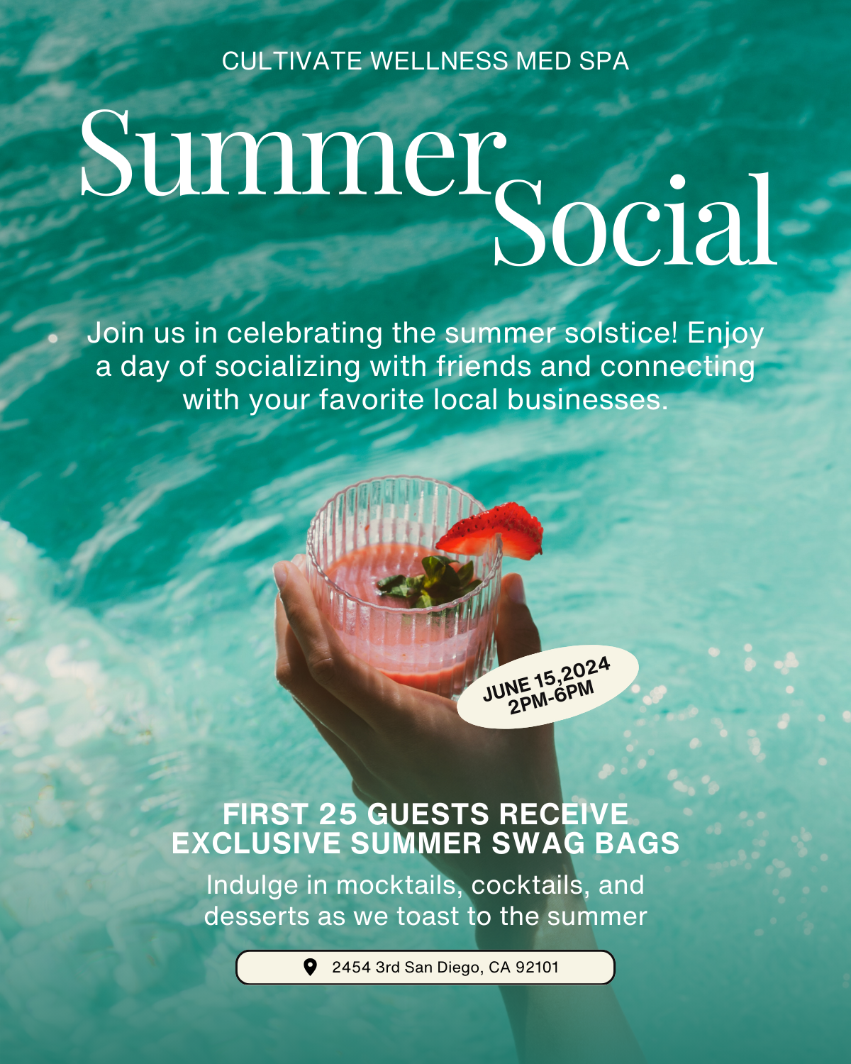 Hello friends! We're excited to invite you to our Summer Social at Studio NN. Join us to reconnect with old friends, meet new ones, and enjoy our specially crafted summer cocktails and mocktails, accompanied by delightful small bites. Don't miss this chance to mingle with your favorite local women-owned businesses, offering exclusive deals just for the day. Plus, every purchase comes with a free gift as a token of our appreciation for your support. We're eager to see everyone there and share a moment of wellness and joy as we celebrate the vibrant spirit of summer together.